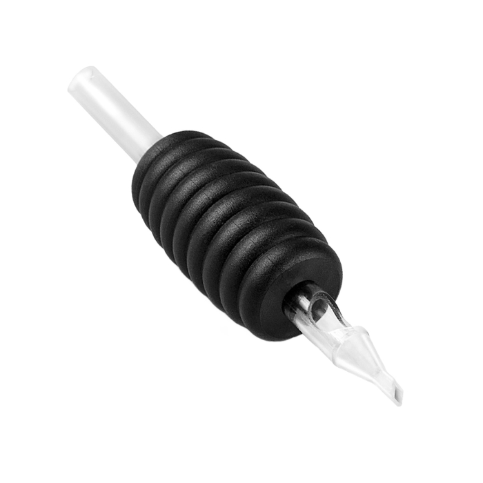 Box of 20 disposable tattoo grip / tip combination silicone diamond tubes with a 25mm grip and transparent inner stem for better visibility while tattooing.