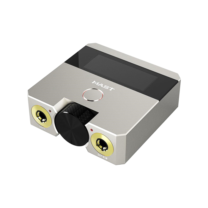 Providing an output voltage of 3-12 V, adjustable in 0.1 V increments by turning the large dial on the front of the supply, the Mast Skate's two output jacks allow you to power two tattoo machines, a machine and a pedal, or just one device as you work, with LEDs to indicate which outputs are active.