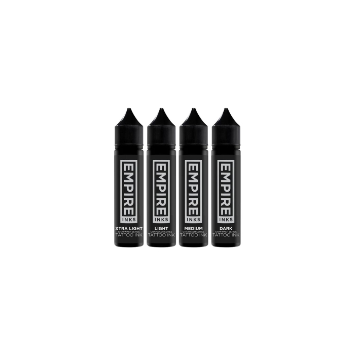 Empire Inks is a tattoo ink manufacturer built by tattoo artists and specially designed for incredible black and grey tattoo work. Inspired by how fast the technology of tattooing has developed, Empire Inks is determined to upgrade inks to match. The pigments are ground to an extra-fine powder so the resulting ink goes into skin smoothly, produces smoother tones, and prevents peppered shading. All Empire Inks products are 100% vegan and manufactured in the USA.