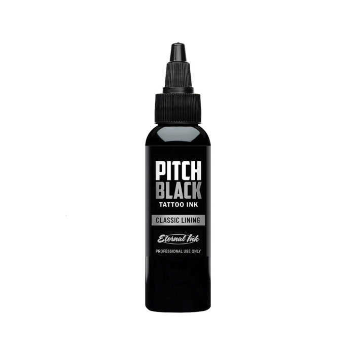 Pitch Black is the blackest tattoo ink in the Eternal Ink range, offering two reliable, workable inks that will heal and hold as black as they go in. No second passes needed!