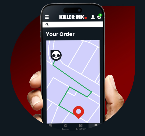 The Killer Ink App makes ordering and redeeming rewards faster and easier than ever!