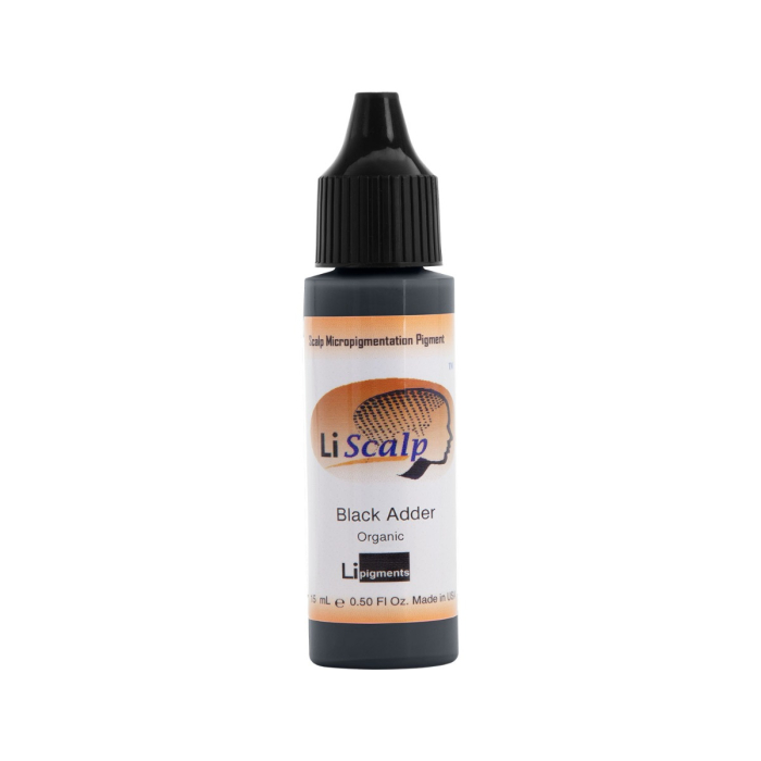 Li Pigments Black Adder is the deepest dark black colour in the Li Scalp Organic range. Use as an additive only. Recommended for use by experienced technicians only due to it being a carbon black pigment.