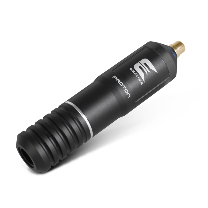 The Equaliser Proton is a tattoo pen made by Kwadron in Poland. Its advanced gear system makes this a very quiet and reliable cartridge tattoo machine. You will notice the compete lack of vibration. The frame is made from anodised aluminium of the highest quality, making it very light: just 130 grams.