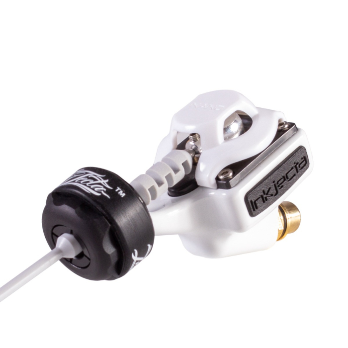 The Inkjecta Flite Nano Elite is a rotary tattoo machine for cartridges. It features a billet alloy construction and a custom Nano technology motor, which ensures a very smooth performance. The Inkjecta Flite Nano Elite is the most versatile of the Inkjecta machines: it comes with all four drive bars: the soft, medium and hard torsion drives and the black semi rigid drive. This allows you to set up the hardness of your Inkjecta exactly as you like it.
