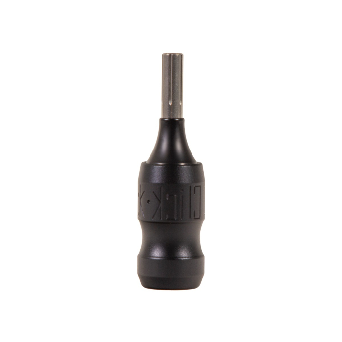 The Click Click V2 by Lauro Paolini is an adjustable aluminium cartridge grip. You can adjust the needle depth by simply twisting the grip. Its ergonomic shape allows artists to work comfortably, even during long sessions. The Click Click Grip V2 is compatible with all major cartridge brands and can be used together with rotary as well as coil tattoo machines.