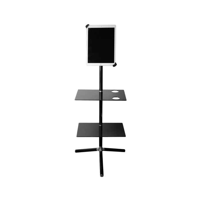 Made from carbon fibre and aluminium, this workstation is lightweight and portable without sacrificing durability and strength. There are two trays on the central pole both measuring 28 x 40 cm, one of which has two cup holders, and it can be set up for use with an iPad or tablet holder.