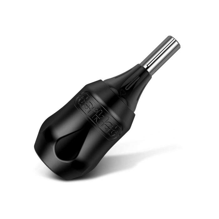 The RPG Click Ergo in Black has been designed with ergonomics in mind and utilises FK Irons ratchet disc click system, which enables adjustment of needle depth while preventing involuntary turning, even with heavy machines. Designed in conjunction with FK Irons Pro Team artists as well as ergonomics experts, the Click Ergo profile tapers from 25-32mm, providing optimum comfort for all hand sizes. This also allows the artist to get closer to the cartridge for ultimate precision and control while supporting a natural drawing position. The re-designed groove pattern provides a supported index finger rest and eliminates pressure points relieving hand fatigue for longer, more comfortable sessions.