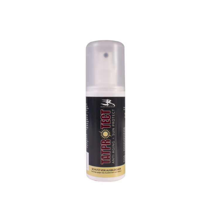 TATProtect Anti-Aging and Sun Protect with SPF 30 protects your tattoos from fading and from premature aging of the skin. Waterproof, it will protect against harmful UVA and UVB rays while moisturising and keep the skin smooth. The vitamin E in its formula increases the skin's resistance, promotes metabolism and reduces premature skin aging through free radicals. TATProtect Anti-Aging and Sun Protect's cooling formula is refreshingly light and is absorbed immediatly by the skin.